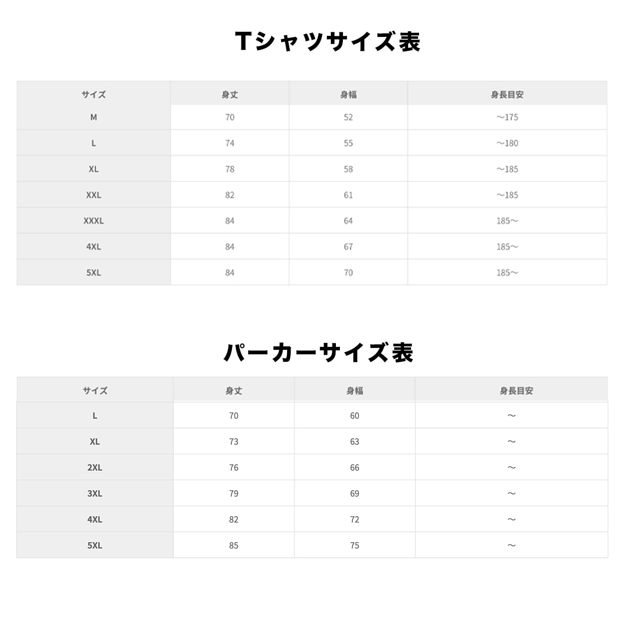 ・パーカー (2L〜5L)
